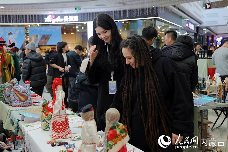 第二十二届中俄蒙国际冰雪节“匠心非遗 乐享俄餐”活动现场,游客在选购心仪商品。满洲里市委宣传部供图